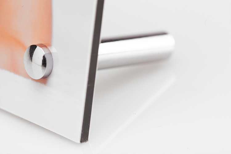 Wir liefern Ihren Fotoaufsteller jeweils mit einem Paar verchromter Standfüße. So lassen sich die Bilder bequem auf Tische oder Regalböden stellen und sind eine echte Alternative zum klassischen Bilderrahmen.