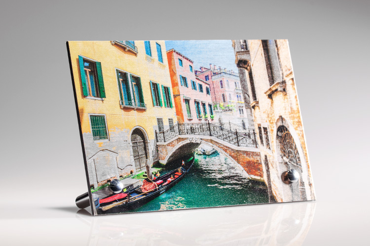 Fotoaufsteller aus gebürsteten Alu-Dibond