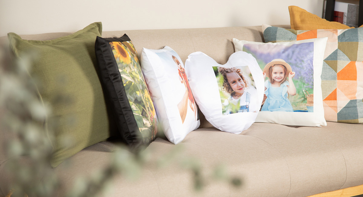 Entscheiden Sie sich für Herzform oder quadratisch, schwarz-weiß, satiniert oder flauschig – und gestalten Sie Ihr individuelles Kissen.