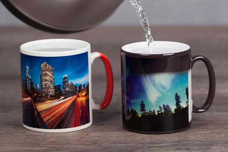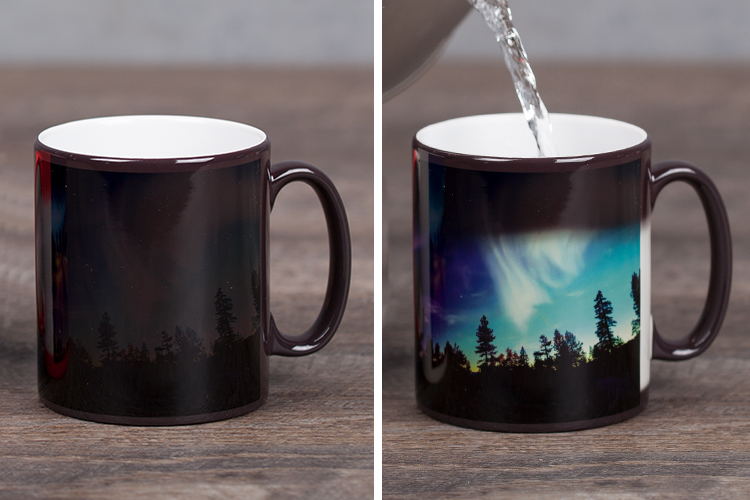 Die Zaubertasse wirkt durch eine spezielle thermosensible Beschichtung: im kalten Zustand erscheint sie meist dunkel, beim Einfüllen eines heißen Getränks wird Ihr persönliches Foto sichtbar, weil die Hitze die Farbe verändert und das Motiv zum Vorschein bringt.