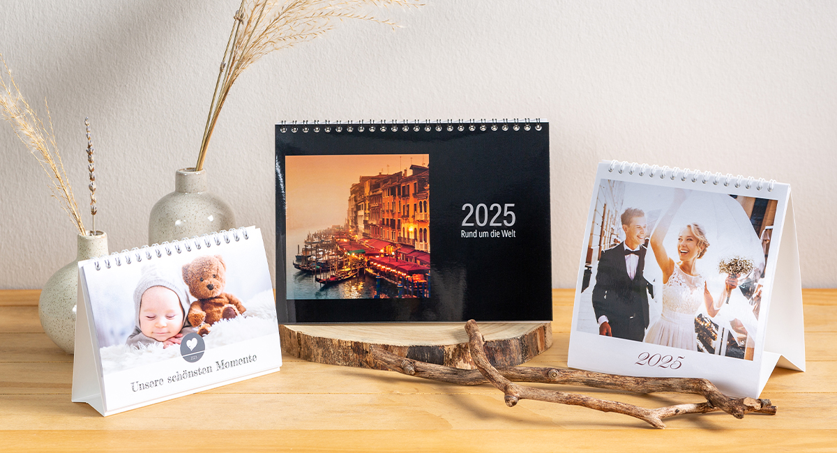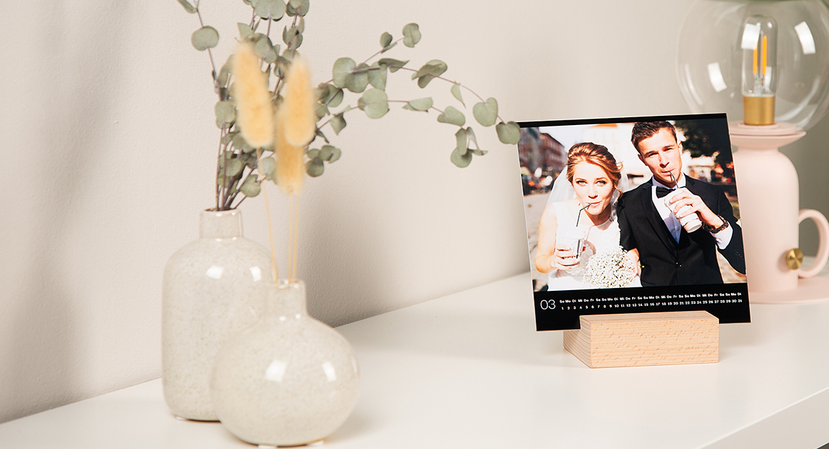Neu im Sortiment: Der Tischkalender ohne Bindung mit originellem Holzaufsteller und Fujifilm Fotopapier. Jetzt Kalendervorlagen nutzen und Online gestalten! Hinweis: Sie möchten den Holzaufsteller wiederverwenden? Der Kalender lässt sich auch ohne Aufsteller bestellen.