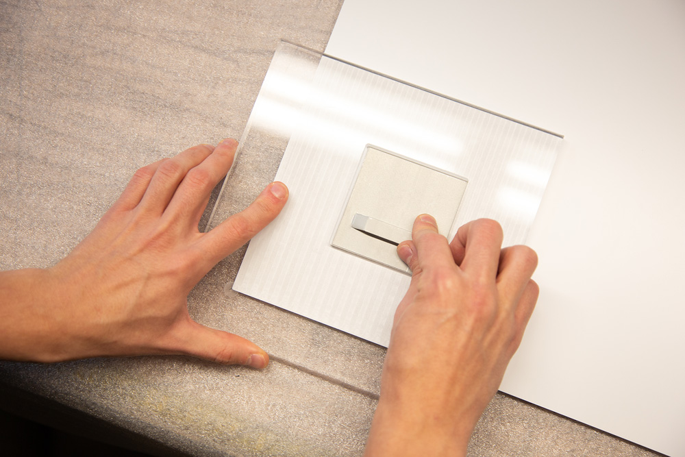 Die Silikonkaschierung ist ein hochwertiges Veredelungsverfahren, bei dem das gedruckte Motiv mithilfe von flüssigem Silikon vollflächig mit der Acrylglasplatte verbunden wird. Das Silikon wird gleichmäßig aufgetragen, sodass eine absolut blasenfreie und klare Verbindung entsteht. Anschließend folgt eine kontrollierte Trocknungs- und Aushärtungsphase.