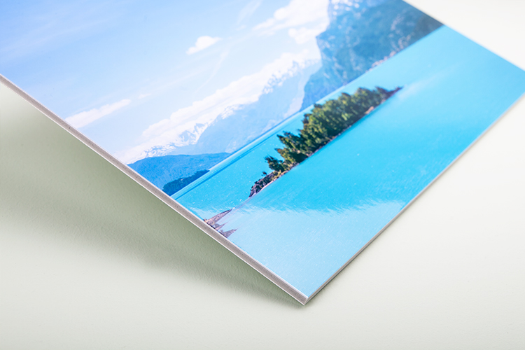 Ihr Wunschmotiv wird auf Premium Fotopapier in Glanz, Matt, Silk oder Pearl Metallic belichtet und anschließend auf die Leichtschaumplatte kaschiert.