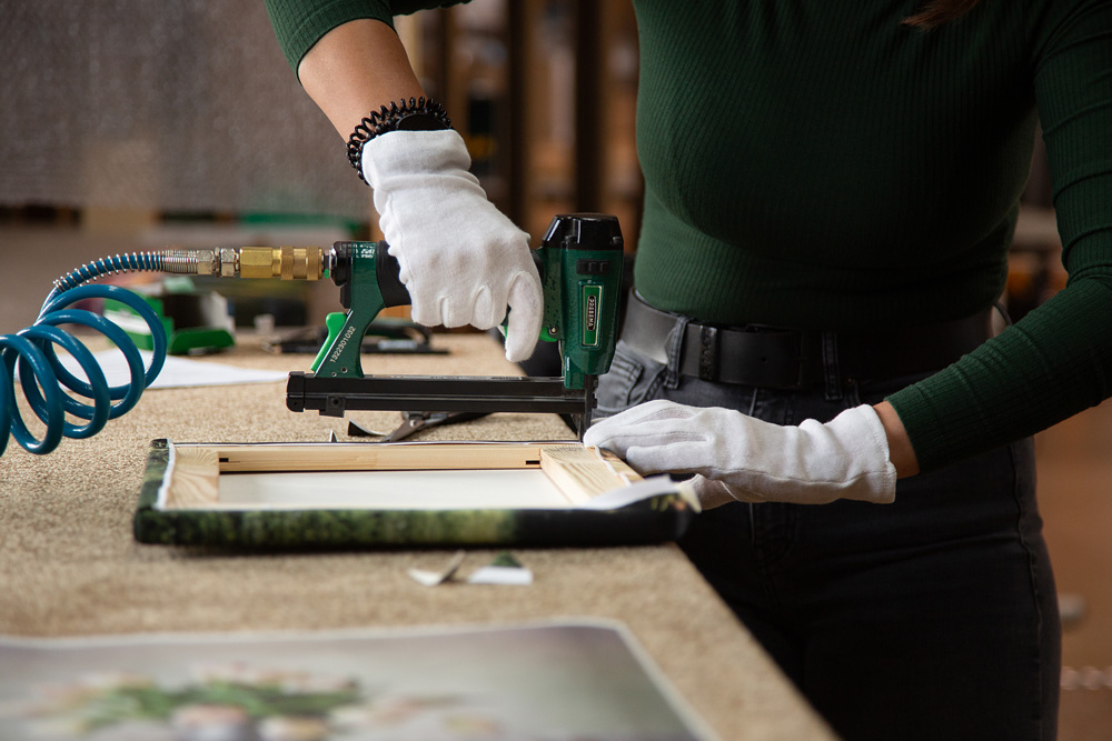 Fertigung Ihrer Fotoleinwand in professioneller Handarbeit